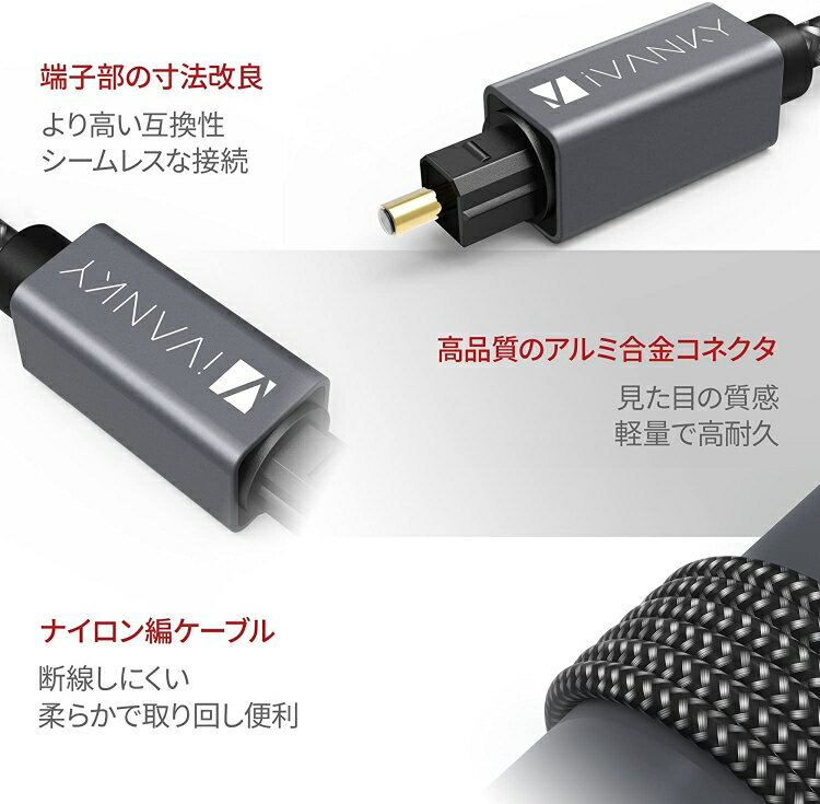 【日本製光ケーブル採用】iVANKY 光オーディオケーブル は、よりよい音質を実現するために日本製の光ファイバーを採用。